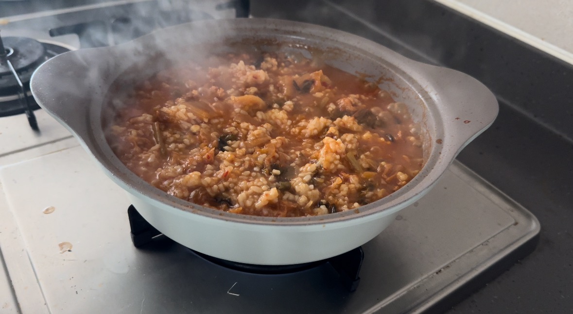 속이 불편해 오늘은 김치낙지죽 끓여봤는데요