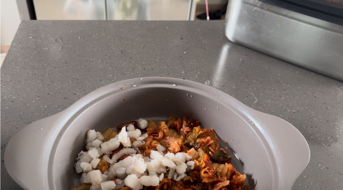 팬에 기름을 살짝만 두르고 김치와 낙지를